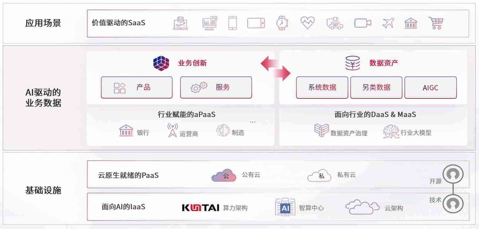 数字时代,,围绕企业数字化转型的关键要素,,ABPAY爱博钱包数码开创性的提出数云融合战略和技术体系框架,,,,着力在云原生、、数字原生、、AI原生和信创产业上架构产品和服务能力,,,为处在不同数字化转型阶段的快消零售、、、、汽车、、、、金融、、、医疗、、、政企、、、教育、、、运营商等行业客户提供泛在的敏捷IT能力和融合的数据驱动能力,,,构建跨界融合创新的数字业务场景和新业务模式,,助力企业级客户建立面向未来的核心能力和竞争优势,,,全面推动社会的数字化、、智能化转型升级。。。