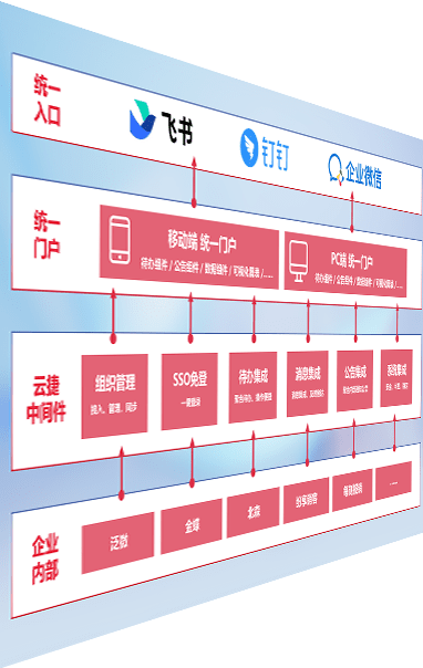 对协作平台提供支持服务,,,支持企业应用与协作平台对接,,,包含组织同步、、、消息集成、、、待办集成等。。。。支持目前主流的协作平台:钉钉、、、、企微和飞书。。。